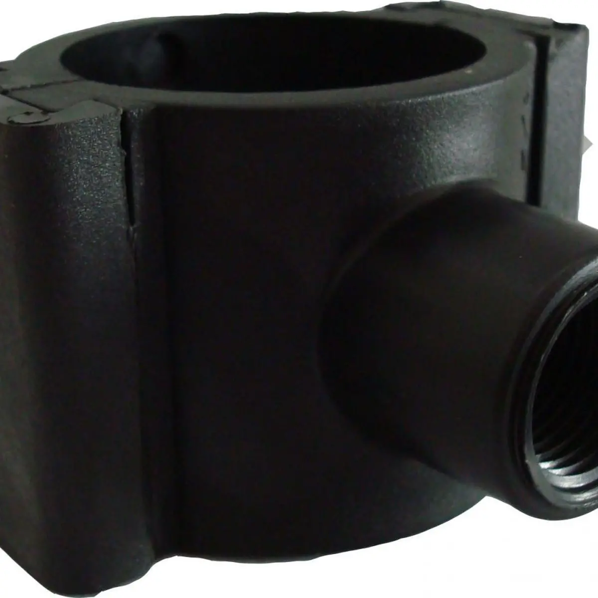 Abraçadeira para cano 75mm com rosca 1”, resistente e prática, ideal para fixação segura em sistemas de ordenha e tubulações.