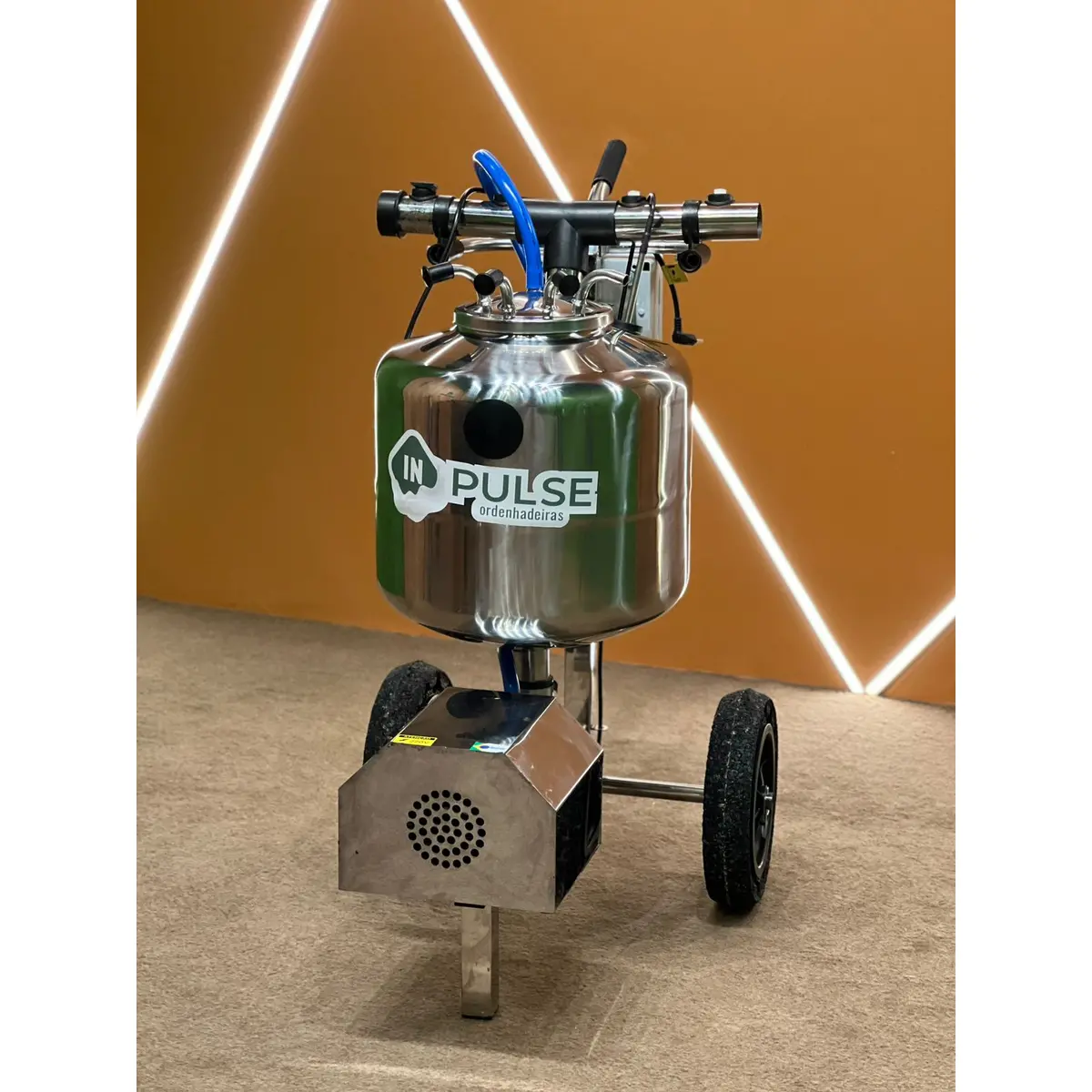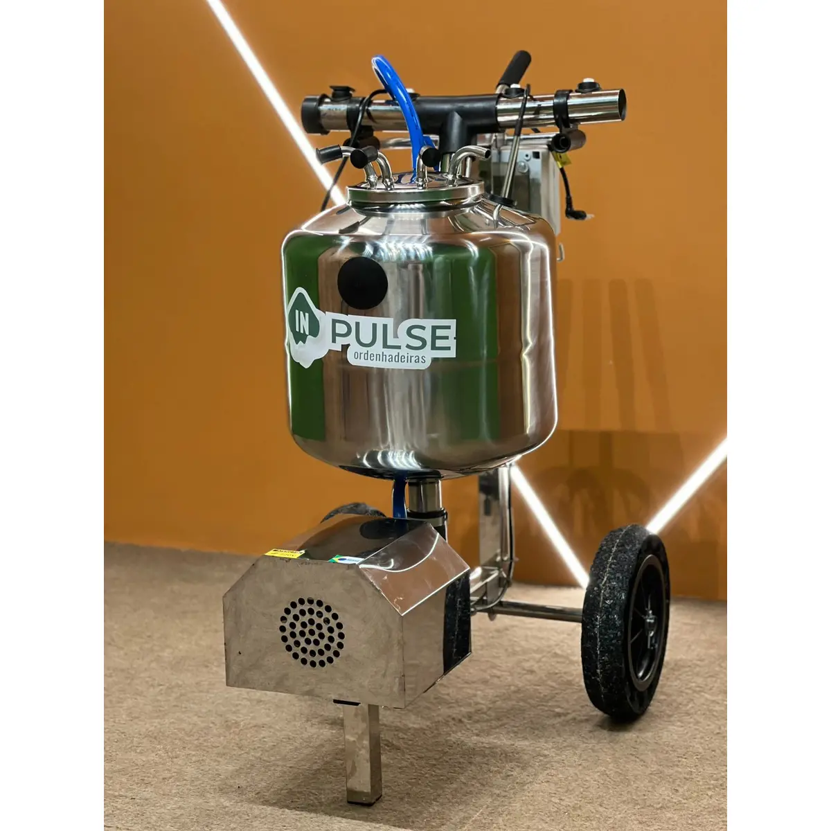Capacidade do garrafão de 50 litros, com entrada para até 4 conjuntos, podendo ordenhar até 4 vacas simultaneamente, transporta o leite automaticamente até o resfriador, através do sensor de nível que aciona o motor.